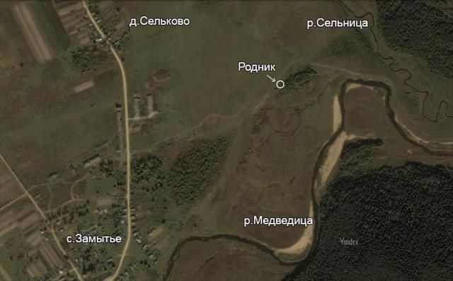 Родник расположен в Рамешковском районе Тверской области примерно в 700 метрах от с.Замытье на северо-восток и в 200 метрах от реки Медведицы на левом её берегу в 1 км ниже села.