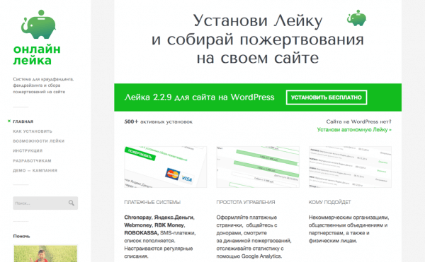 Задача плагина «Лейка» – упростить и усовершенствовать сбор пожертвований на сайтах НКО и общественных проектов. Установить версию плагина 2.3 можно бесплатно по ссылке.
