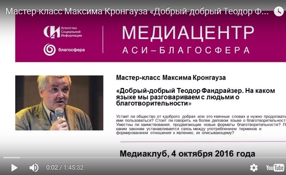 Предлагаем вашему вниманию запись мастер-класса Максима Кронгауза «Добрый-добрый Теодор Фандрайзер»